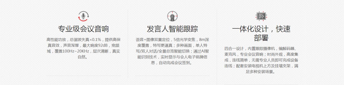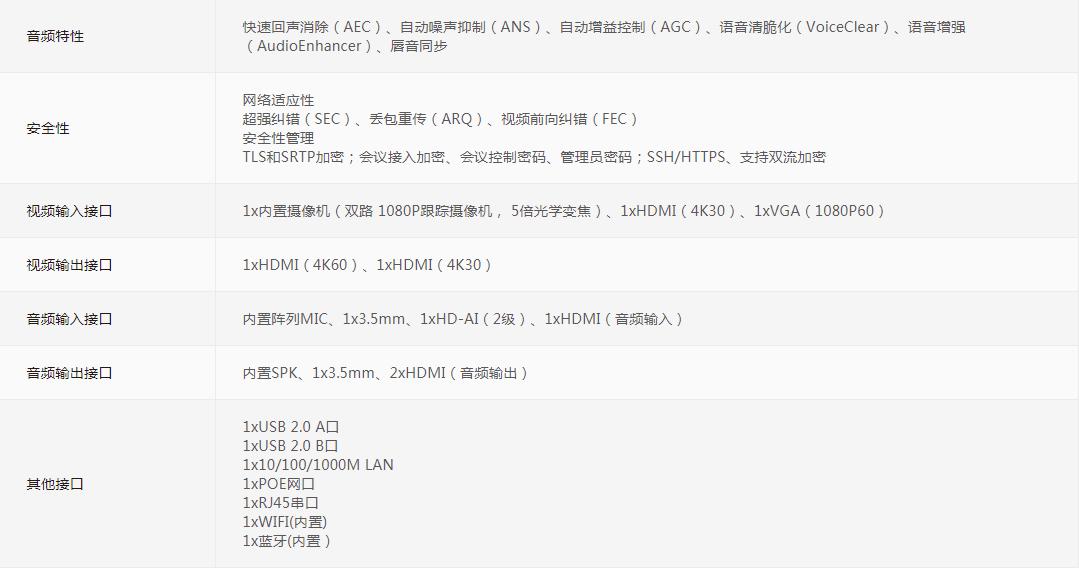 华为CloudLink Bar 500包括一个强大H.265编解码器和两个高清智能跟踪摄像机,集成12个麦克风阵列和专业会议音响,超强网络适应能力,人性化操作界面,完美满足中小型会议室视频沟通需求。