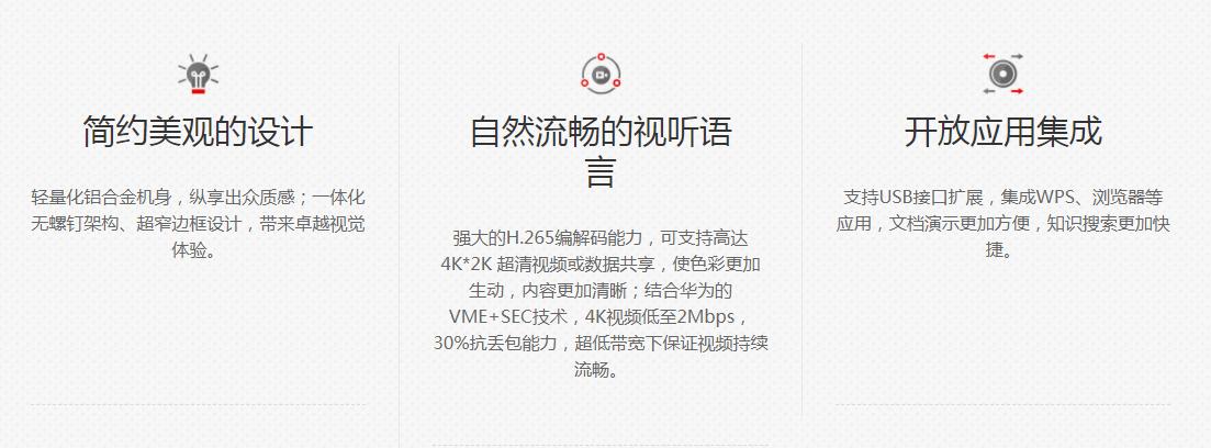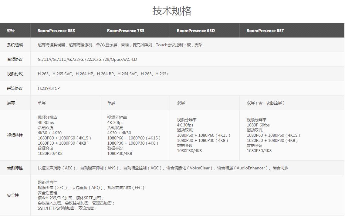 华为 CloudLink RoomPresence 集成高性能高性价比编解码器、超高清摄像机、单双显示屏、数字阵列麦克风、扬声器、一体化结构件,使用Touch平板统一操控,适用于大中小型会议室,多人召开智真会议的应用场景。