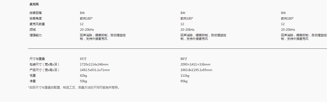 • 内置华为云会议,即插即用;顶配双SOC设计,独立的图形计算+AI计算+音视频编解码引擎,提供专业级智真会议体验;扫码一键入会、智能语音助手,无需繁杂操作即可快速入会。 • 采用12个阵列麦克,通过波束成型,轻松拾取8米内的人声;智能降噪,让与会人专注聆听。 • 支持发言人跟踪*功能,保持发言人始终处于C位,避免出现“只闻其声不见其人”的尴尬画面;支持Auto Framing智能取景,根据会议室与会人数自动调整取景框大小,时刻呈现理想会议视角。 |