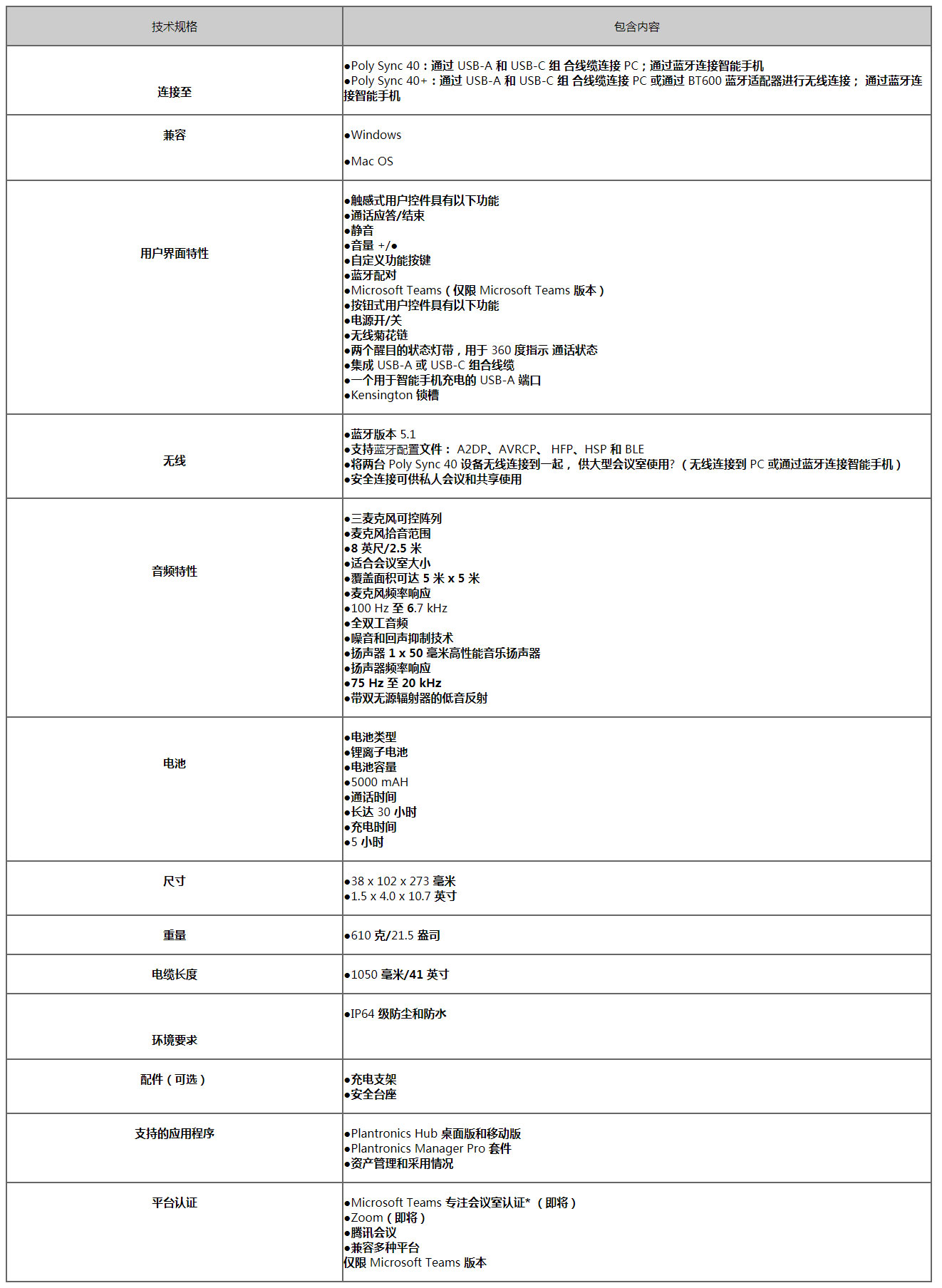 无线配对两台设备,供大型会议室使用。设备可提供长达 30 小时的通话时间。